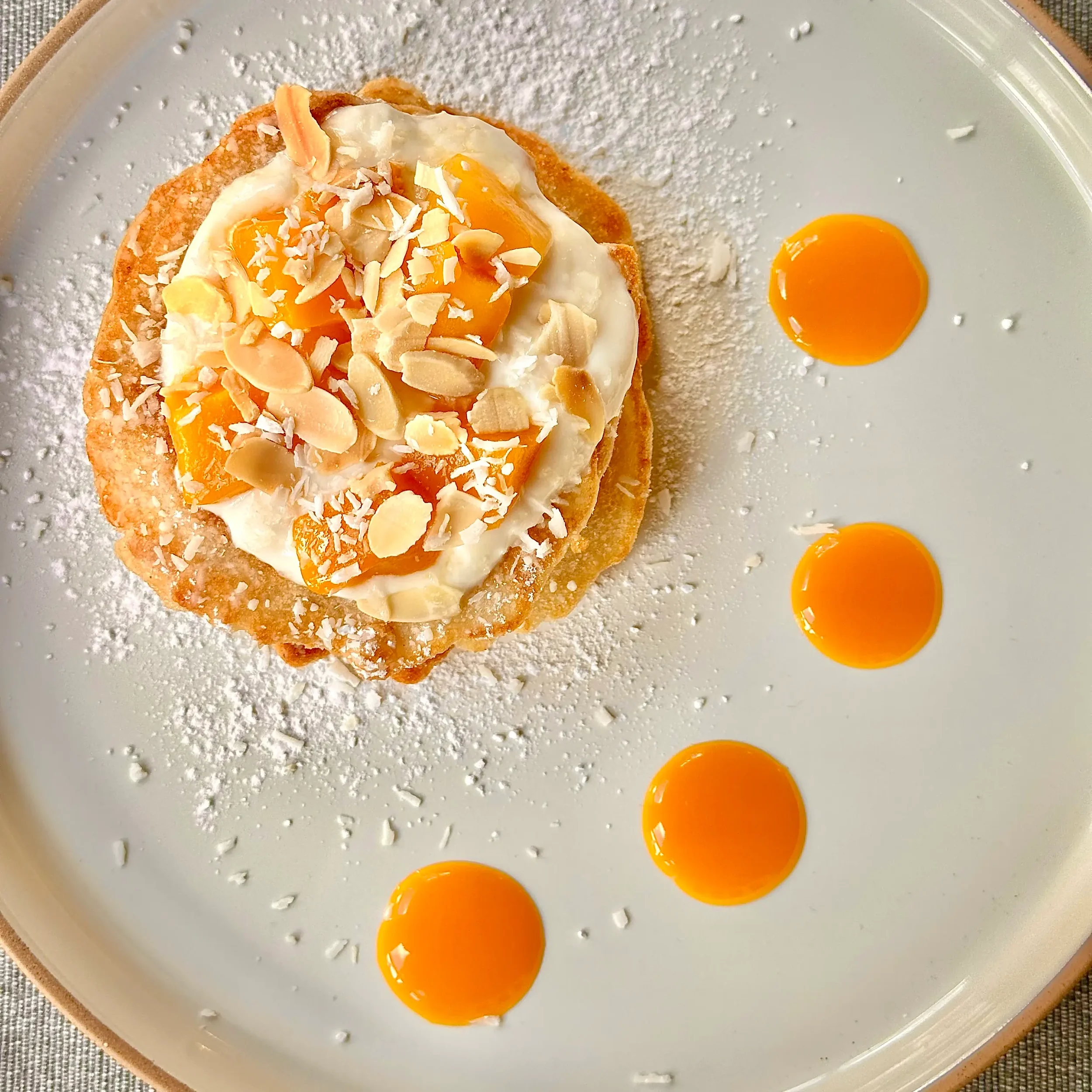 tropical coconut and mango pancakes